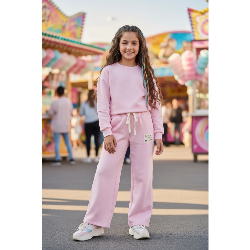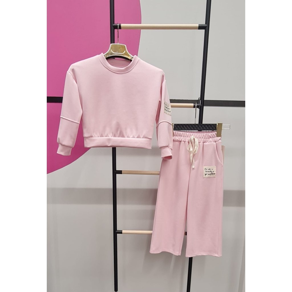 Dívčí tepláková souprava v pastelové barvě je stylový a pohodlný outfit pro každodenní nošení. Souprava obsahuje krátkou mikinu moderního střihu a široké tepláky, které poskytují maximální pohodlí a volnost pohybu. Pastelové barevné provedení dodává soupravě jemný a trendy vzhled.