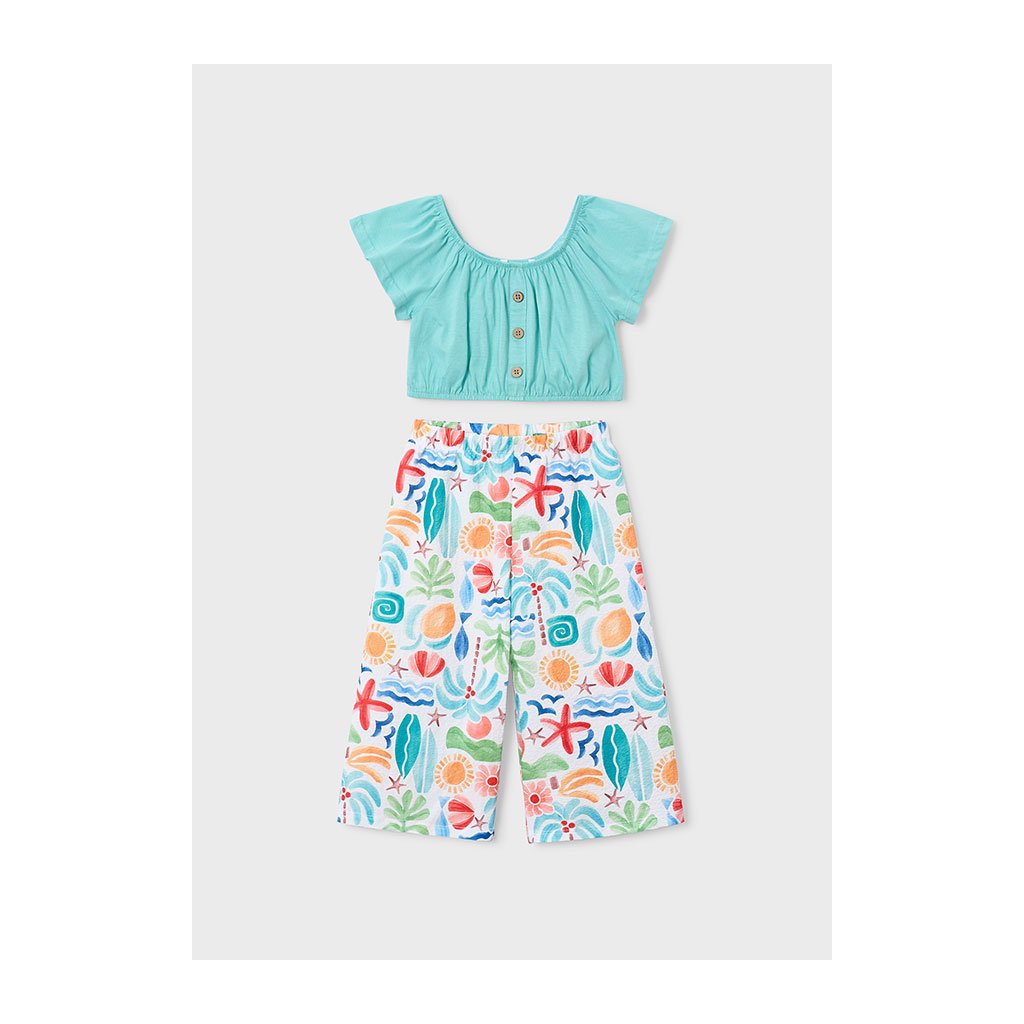 set obsahuje 3/4 široké letní kalhoty a krátký crop top