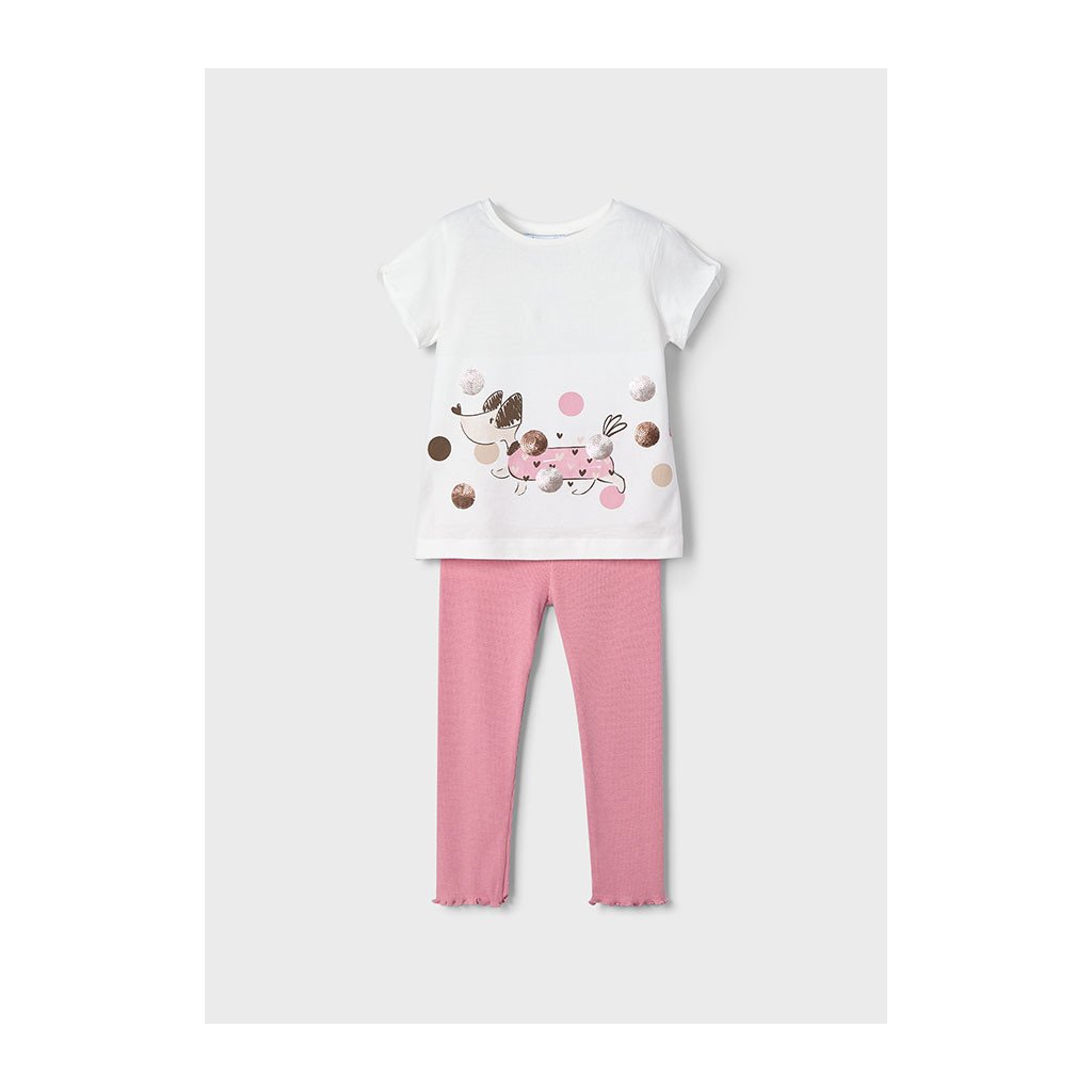 Pohodlný 2-dílný dětský set sestává z pružných legín a lehkého krátkého trička s krátkým rukávem, které společně tvoří ideální outfit na každý den. Měkké materiály zajišťují příjemné nošení, ať už doma, ve škole nebo ve volném čase. Jednoduchý a praktický set je perfektní volbou pro malé slečny, které milují pohodlí a volnost pohybu.