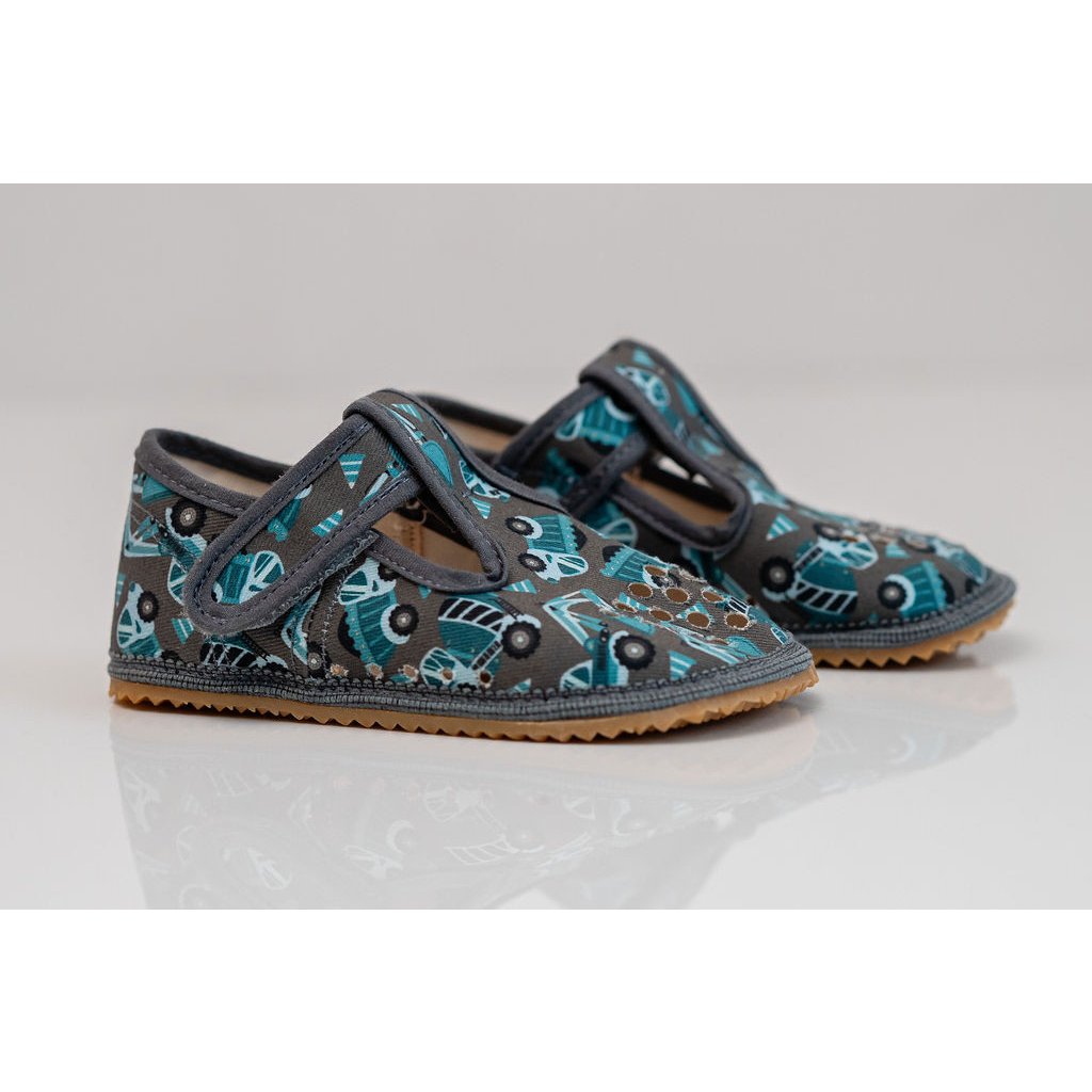 Jsou lehká, měkká a velmi flexibilní pro děti od českého výrobce BEDA. Charakterizují se tenkou, ohebnou podrážkou bez paty (zero‑drop), která umožňuje noze přirozeně se pohybovat a ohýbat. Vyrobena jsou z textilního materiálu s protiskluzovým vzorem na podrážce, takže jsou vhodná na domácí nošení, do školky či školy. Zapínají se na suchý zip, díky čemuž se snadno nazouvají a dobře přizpůsobí tvaru nohy.