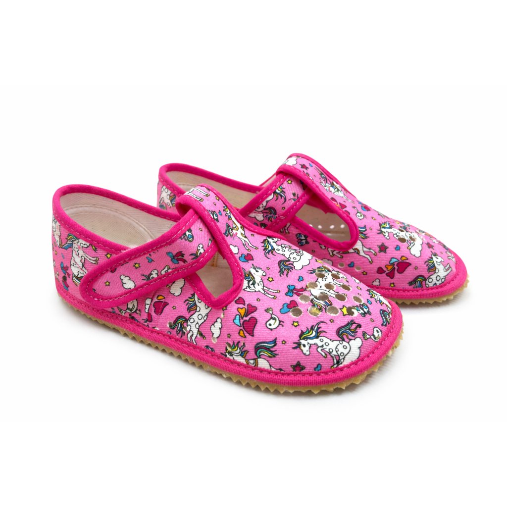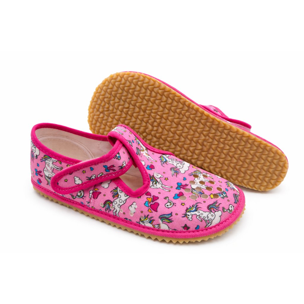 Barefoot dětské pantofle BEDA CRAZY UNICORN perforované