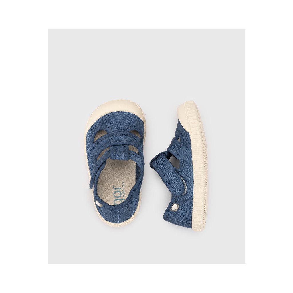 Pohodlné barefoot tenisky značky IGOR zaujmou nadčasovým designem a praktickým provedením. Vrchní část je z velmi jemného praného plátna ze 100 % organické bavlny, vnitřek je textilní a stélka je vyjímatelná. Podešev z vulkanizované přírodní gumy je tenká a pružná s zvýšeným okopem, boty mají jedno zapínání na suchý zip a anatomicky tvarovaná špička poskytuje dostatek místa pro prsty. Model je vhodný pro normální až širší chodidla a je ideální jako lehká barefoot obuv na teplé dny, do města i na hřiště.