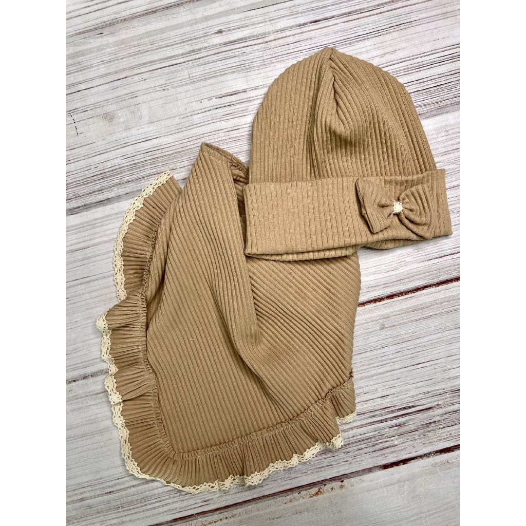 Bavlněná dětská čepice s nákrčníkem - Béžová