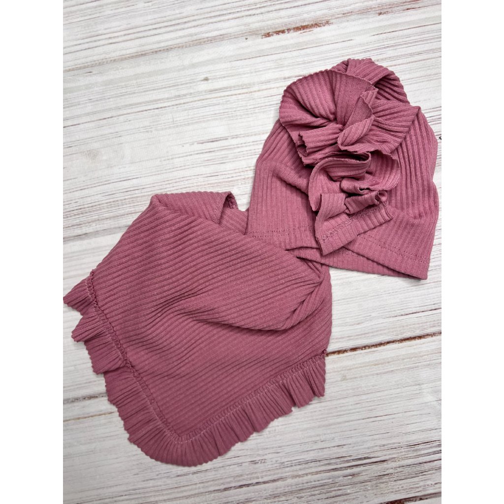 Bavlněná dětská čepice s nákrčníkem - Růžová