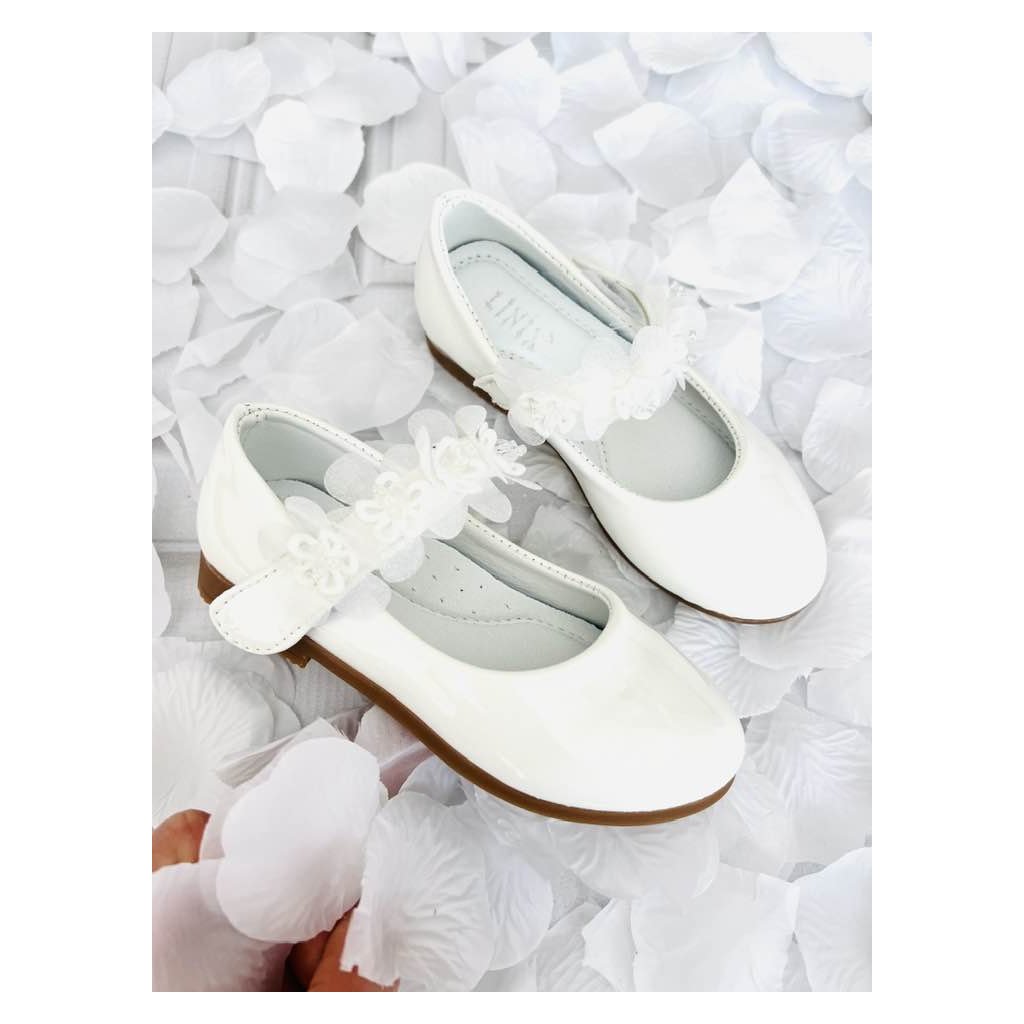 Bílé balerínky na svaté přijímání jsou elegantní a pohodlnou obuví vhodnou na tento výjimečný den. Mají jemný, slavnostní design, který krásně doplní přijímané šaty. Vrchní část z syntetického materiálu je hladká, snadno udržovatelná a působí čistě a elegantně.