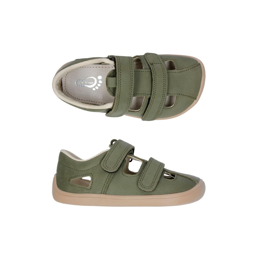 Chlapčenské celokožené barefoot sandály - Zelená