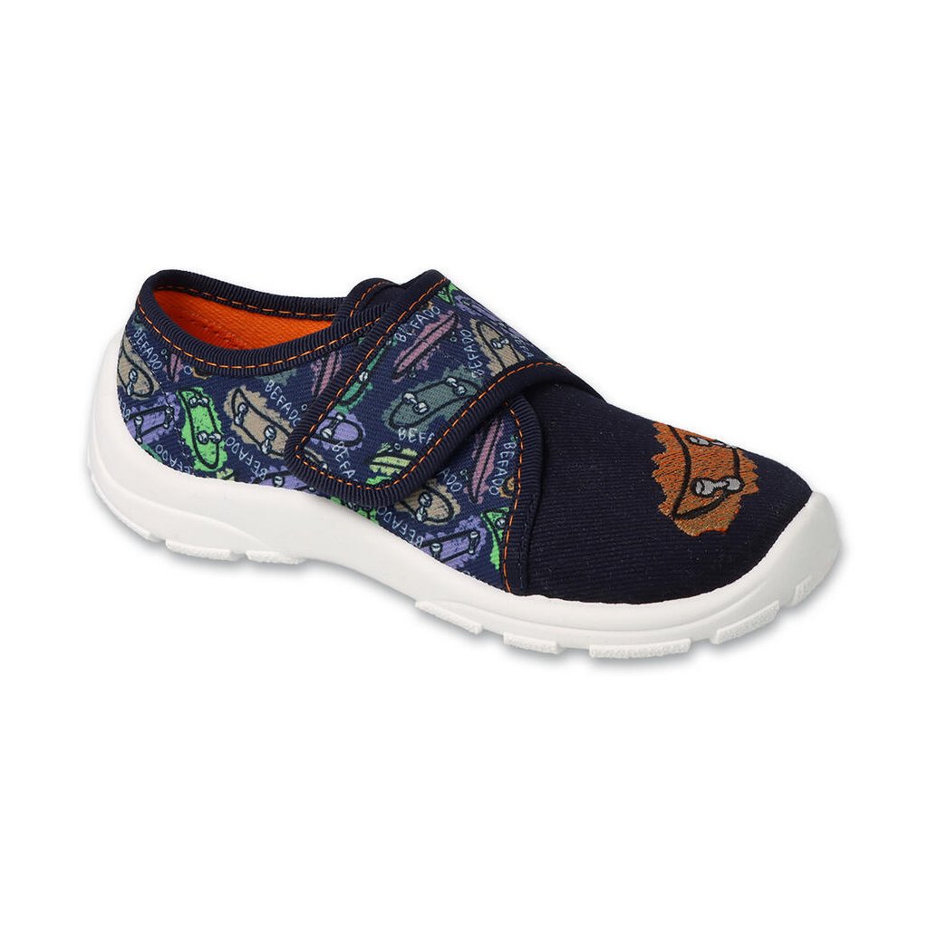 Chlapcové pantofle Befado jsou praktické a pohodlné na každodenní nošení – do školy, školky i domů. Jejich kvalitní, prodyšné materiály zaručují komfort po celý den, zatímco lehká a ohebná podrážka podporuje přirozený pohyb chodidla a bezpečné obouvání umožňuje zapínání na suchý zip.