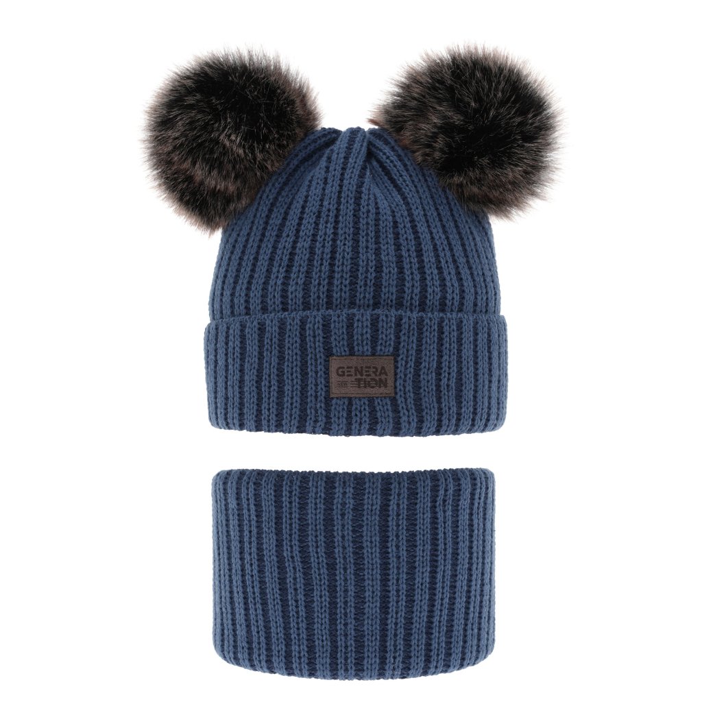 Chlapecká zimní čepice s 2 brmbolci a nákrčníkem