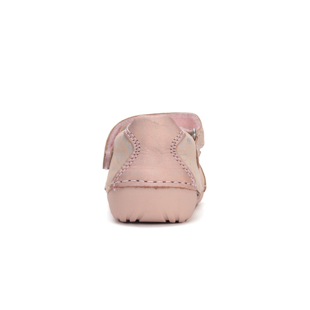 KLASICKÉ, ORTOPEDICKÉ: Topánky sú mierne vystužené, s tvarovanou ortopedickou vložkou. Každý produkt D.D.Step je vyrobený z pravej, kvalitnej hovädzej kože, aby sa zabezpečilo najlepšie prispôsobenie detskej nohe. Predná časť topánky je navrhnutá tak, aby chránila prsty, umožnila ich správny rast a zároveň zvýšila odolnosť obuvi. Formovaná výstuha poskytuje oporu a dlhotrvajúce spevnenie v oblasti päty. PVC výstuž je umiestnená medzi podšívkou a zvrškom, takže sa priamo nedotýka nohy, ale správne fixuje pätovú kosť.