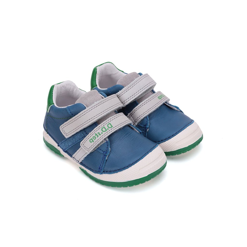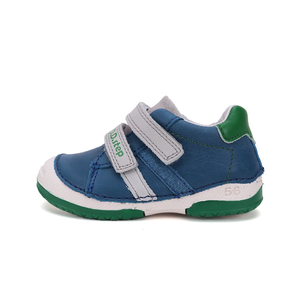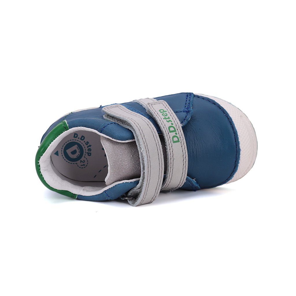 Dětská kožená obuv, měkká-flexibilní podrážka pro pohodlnou chůzi a praktické zapínání na suchý zip. Obuv je celokožená s koženou tvarovanou stélkou z měkčené kůže nejvyšší kvality, aby byla pro děti maximálně pohodlná. Podrážka je lepená a i šitá nejmodernější 3D technologií. Obuv D.D.Step je odlehčená.