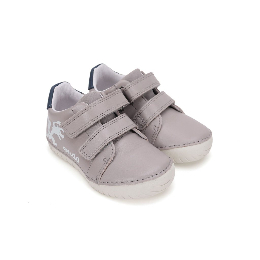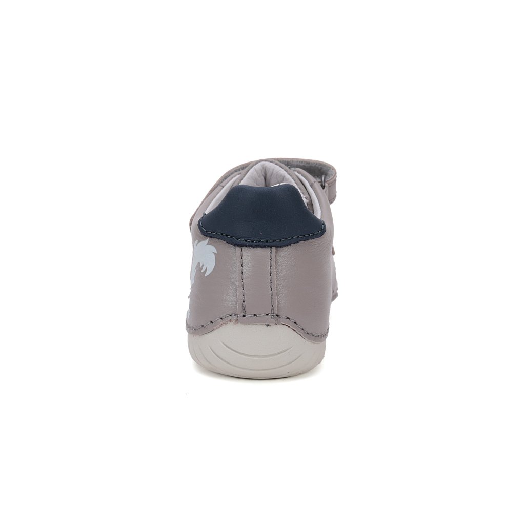 Kožená dětská obuv, přechodné boty značky D.D.STEP s ortopedickou vložkou a tvarovanou klenbou. Obuv je vhodná pro nejmenší děti, které se učí chodit, protože jsou měkké, lehké a velmi ohebné. Jsou vhodné na přechodné období. Zapínání je na suchý zip. Vepředu je zvýšená guma proti okopání.