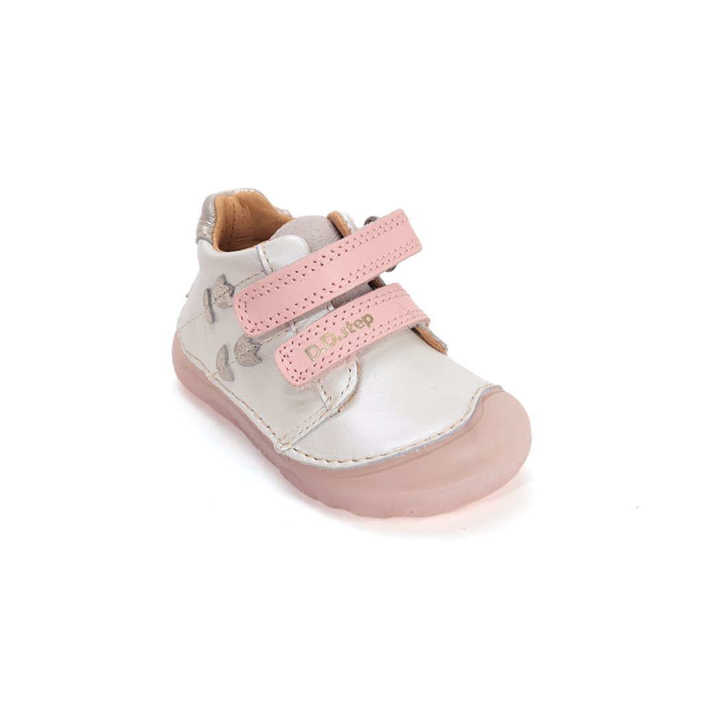 KLASICKÉ, ORTOPEDICKÉ: Topánky sú mierne vystužené, s tvarovanou ortopedickou vložkou. Každý produkt D.D.Step je vyrobený z pravej, kvalitnej hovädzej kože, aby sa zabezpečilo najlepšie prispôsobenie detskej nohe. Predná časť topánky je navrhnutá tak, aby chránila prsty, umožnila ich správny rast a zároveň zvýšila odolnosť obuvi. Formovaná výstuha poskytuje oporu a dlhotrvajúce spevnenie v oblasti päty. PVC výstuž je umiestnená medzi podšívkou a zvrškom, takže sa priamo nedotýka nohy, ale správne fixuje pätovú kosť.