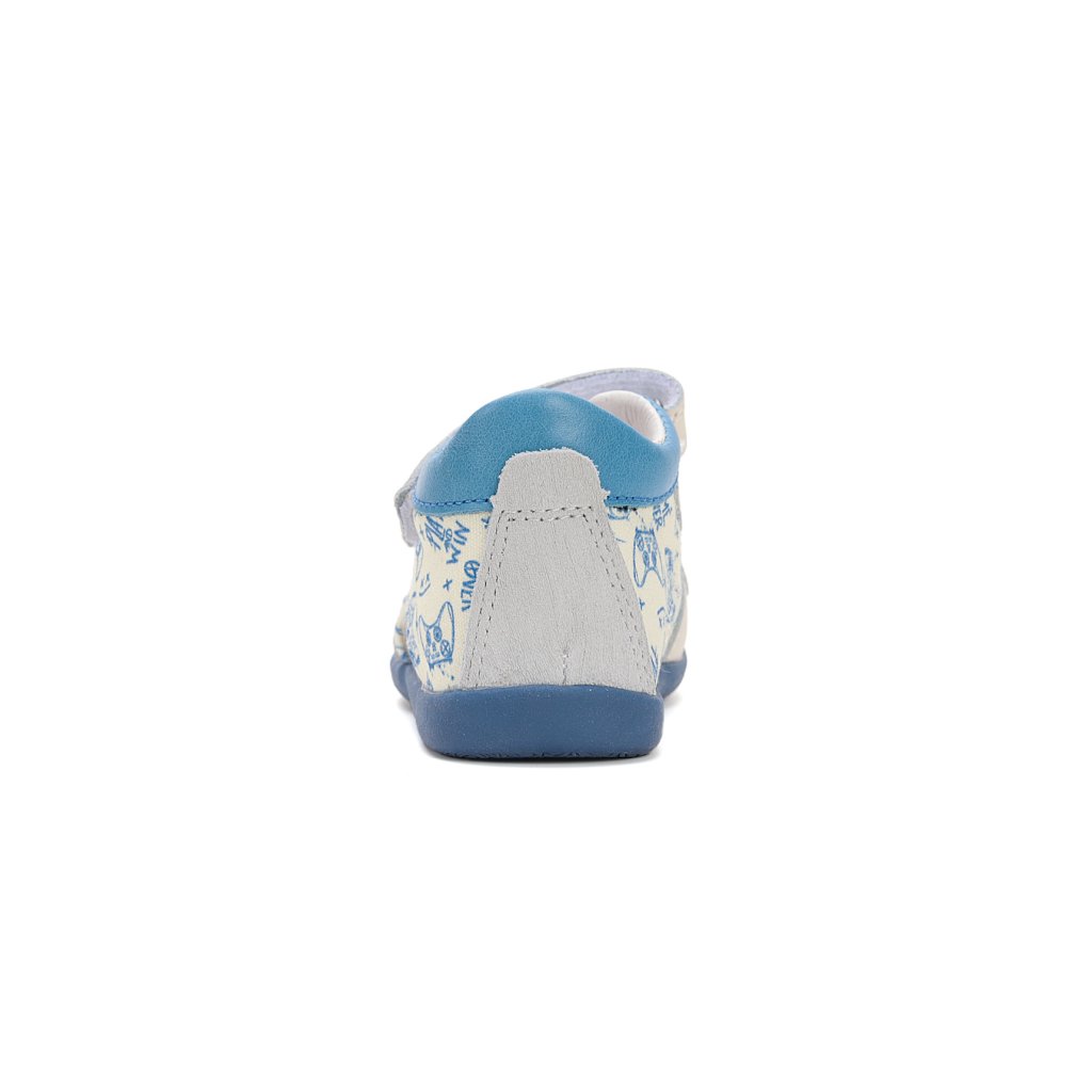 Sandály jsou vyrobené z měkké přírodní kůže, která je prodyšná a šetrná k citlivé dětské pokožce. Ohebné a lehké podrážky podporují přirozený pohyb chodidla a pomáhají správnému vývoji chůze. Vyztužená pata poskytuje potřebnou stabilitu, zatímco dostatek prostoru v špičce umožňuje volný pohyb prstů.