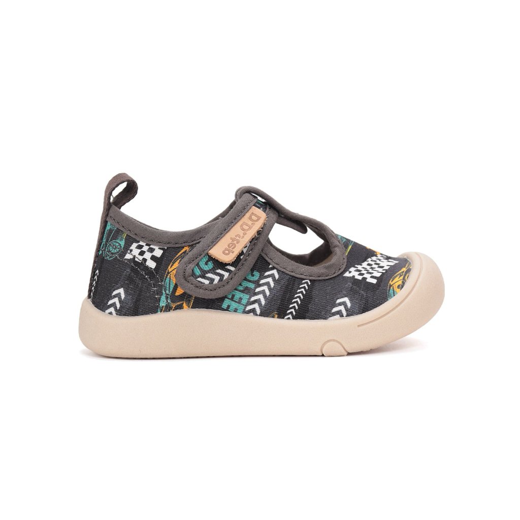 Lehký plátený materiál je prodyšný a příjemný na nošení, vhodný do školy, školky i na volnočasové aktivity. Pohodlný střih a flexibilní podrážka podporují přirozený pohyb při chůzi i hře.