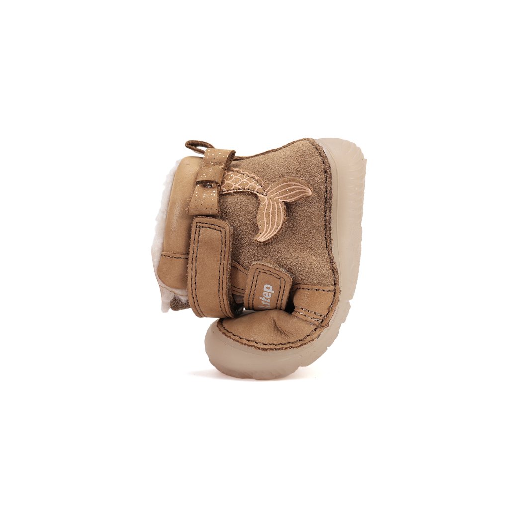 Dětské zimní boty udržují nohy v teple, pohodlí a přirozeně volné i v chladných dnech. Jsou vyrobeny z měkkého koženého materiálu, který chrání před vlhkostí, zatímco teplá kožešina uvnitř jemně obepíná nohu a udržuje ji v teple.