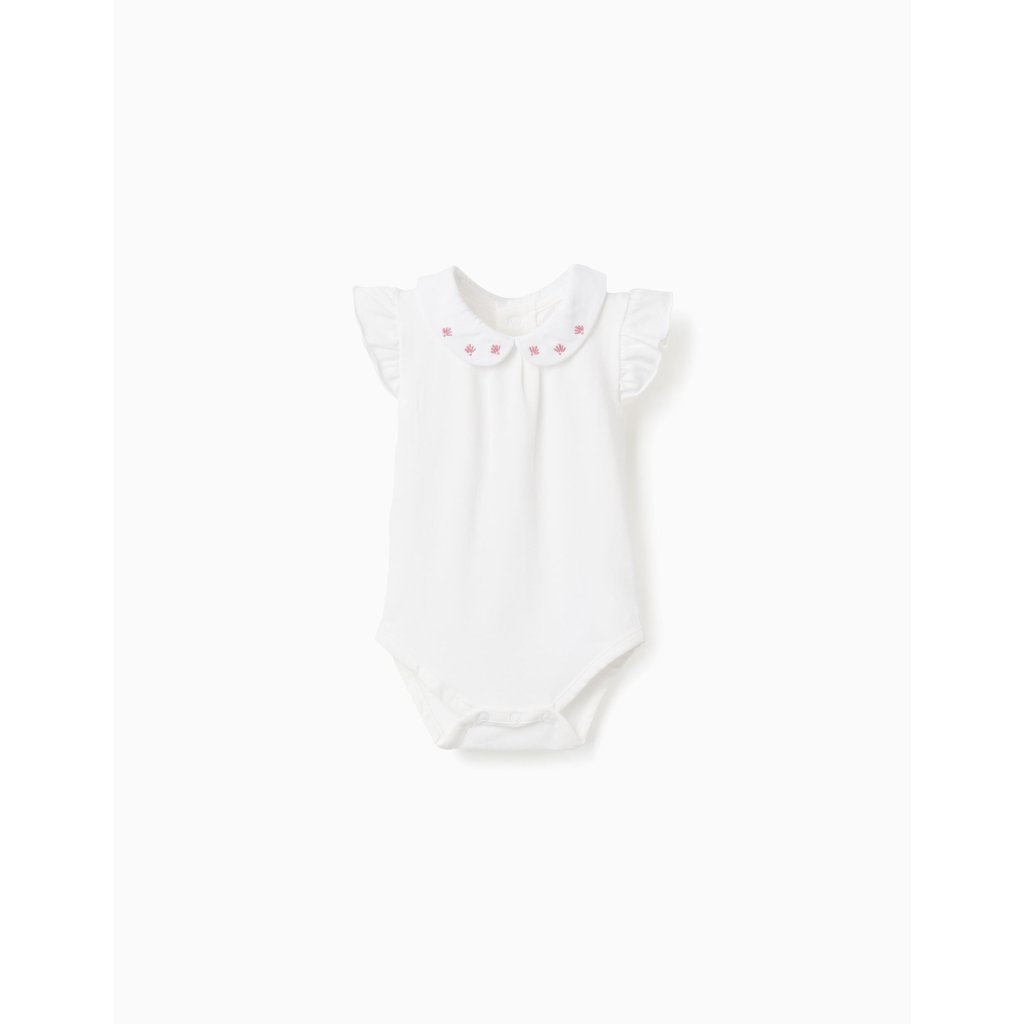 Dívčí bavlněné body s krátkým rukávem v bílé barvě je něžným a pohodlným kouskem do šatníku každé malé slečny. Jemné volány na rukávech dodávají body romantický a elegantní vzhled. Kvalitní bavlna je příjemná na dotek, šetrná k dětské pokožce a vhodná na každodenní nošení i slavnostnější příležitosti.