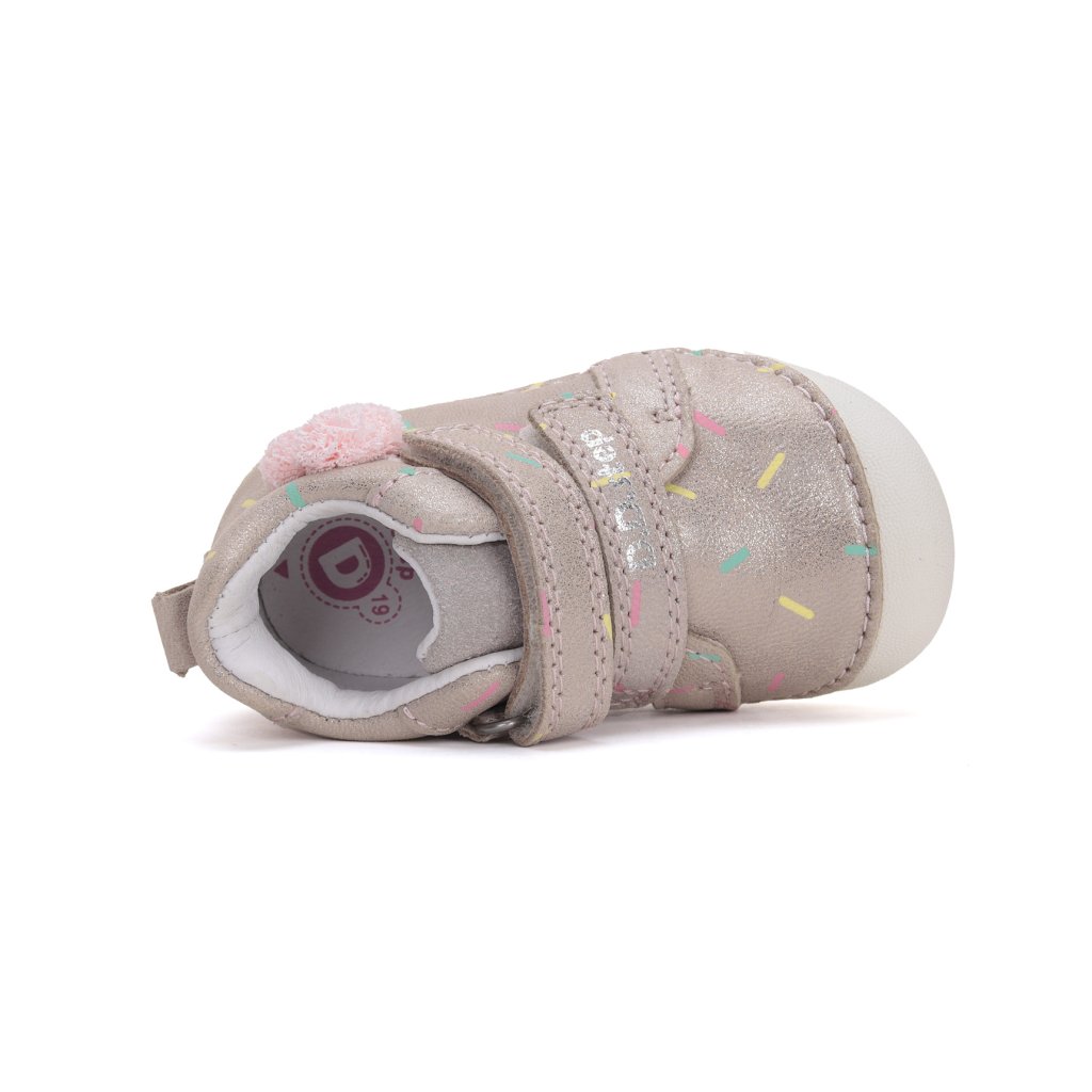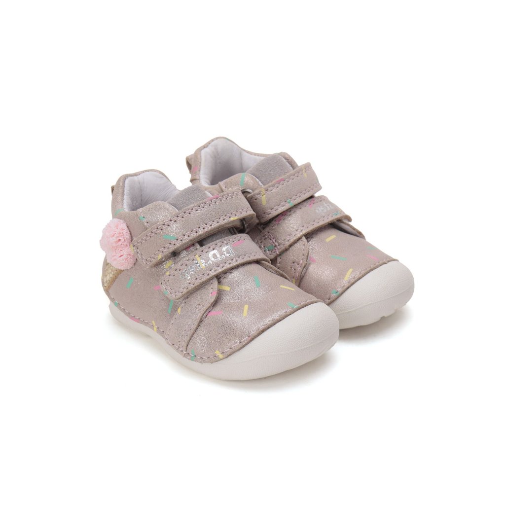 KLASICKÉ, ORTOPEDICKÉ: Topánky sú mierne vystužené, s tvarovanou ortopedickou vložkou. Každý produkt D.D.Step je vyrobený z pravej, kvalitnej hovädzej kože, aby sa zabezpečilo najlepšie prispôsobenie detskej nohe. Predná časť topánky je navrhnutá tak, aby chránila prsty, umožnila ich správny rast a zároveň zvýšila odolnosť obuvi. Formovaná výstuha poskytuje oporu a dlhotrvajúce spevnenie v oblasti päty. PVC výstuž je umiestnená medzi podšívkou a zvrškom, takže sa priamo nedotýka nohy, ale správne fixuje pätovú kosť.