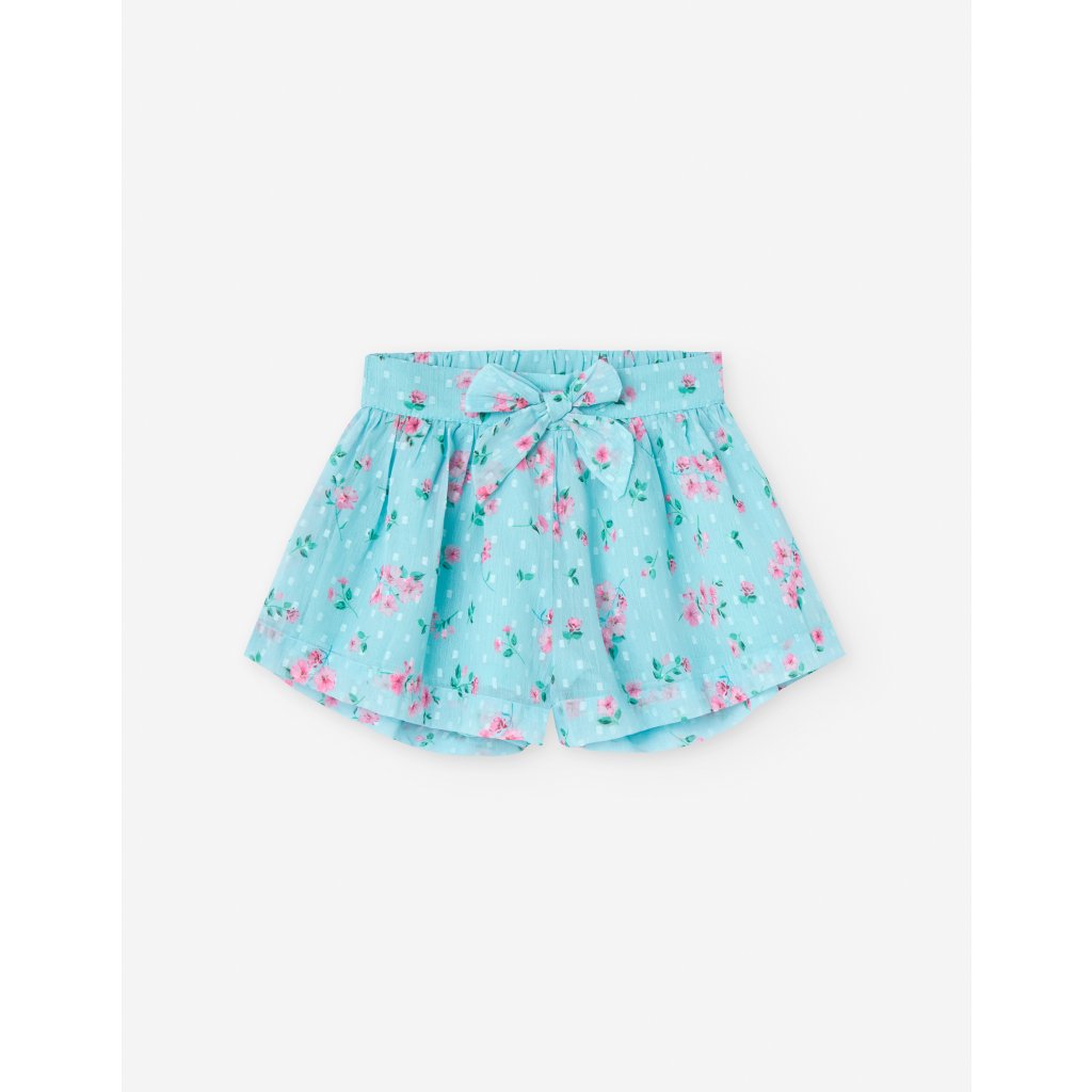 Dívčí letní kraťasy s květinovým potiskem – Tyrkysová