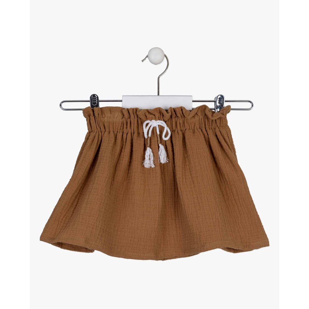 Hnědá barva dodává sukni nadčasový a univerzální vzhled, který se snadno kombinuje s tričky, topy či blůzkami. Praktický střih umožňuje pohodlné nošení do školy, na procházky nebo volný čas.