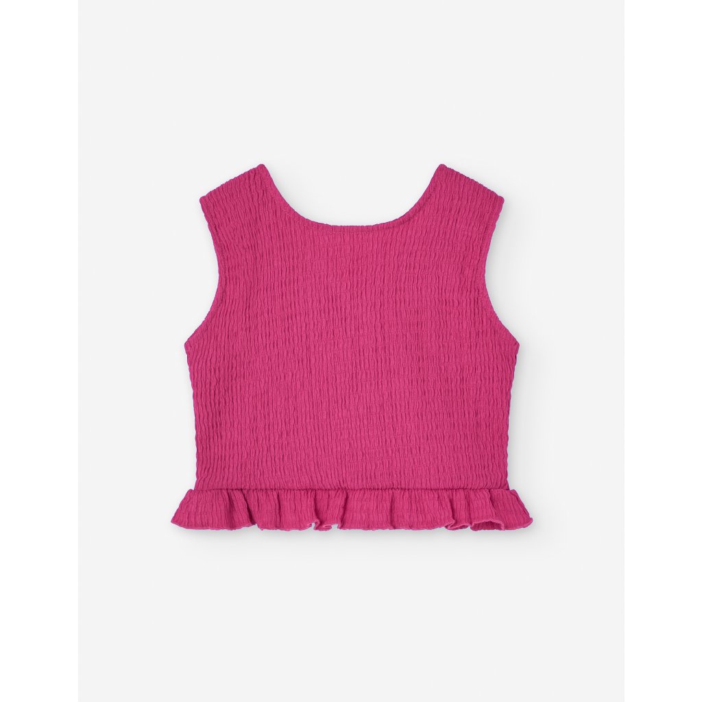 Trendy crop top v zářivé cyklámenové barvě, vyrobený z lehkého a příjemného materiálu. Perfektní na letní dny, dodá outfitu svěžest a moderní dívčí styl.