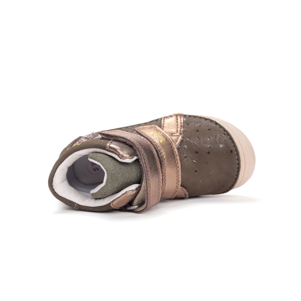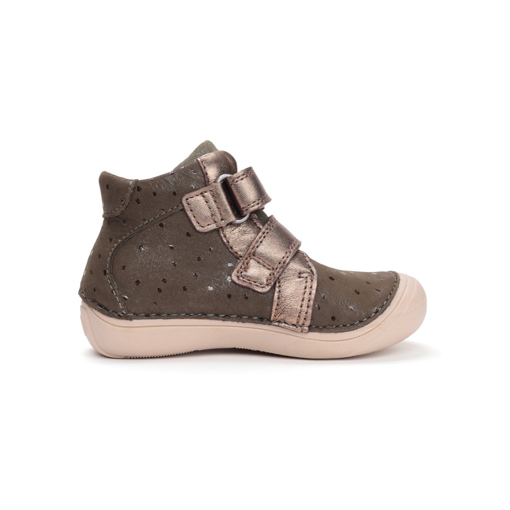 Boty PONTE od D.D.Step jsou vyrobené z kvalitní pravé kůže a poskytují pohodlí i zdravou oporu dětským chodidlům. Jsou vhodné pro děti s vpadnutými kotníky či oslabenou klenbou – díky pevnému podpatku, flexibilní podrážce a tvarované ortopedické vložce zajišťují stabilitu a správné postavení nohy.