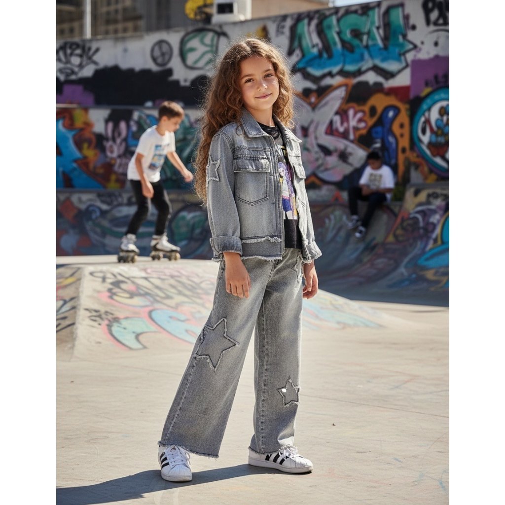 Dívčí široké rifle jsou stylovým a pohodlným kouskem do každodenního šatníku. Volný, široký střih poskytuje dostatek pohodlí a moderní vzhled. Pas je řešen praktickou gumičkou, která se snadno přizpůsobí postavě, zatímco zapínání na knoflík dodává riflím klasický a trendy detail. Kvalitní riflový materiál je odolný a příjemný na nošení. Ideální na běžné nošení do školy i na volný čas.