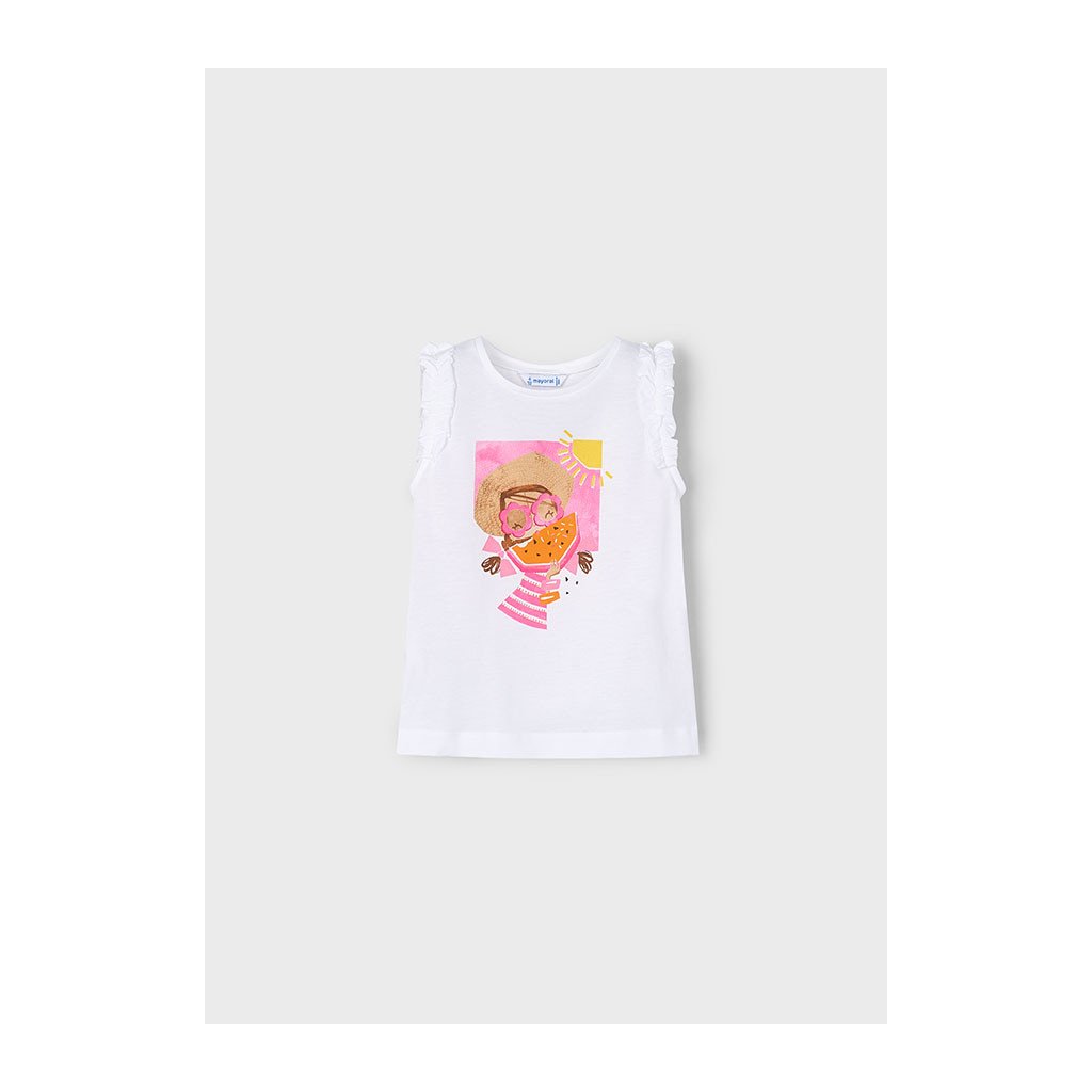 Bavlněné dívčí bílé tričko bez rukávů s potiskem dívky