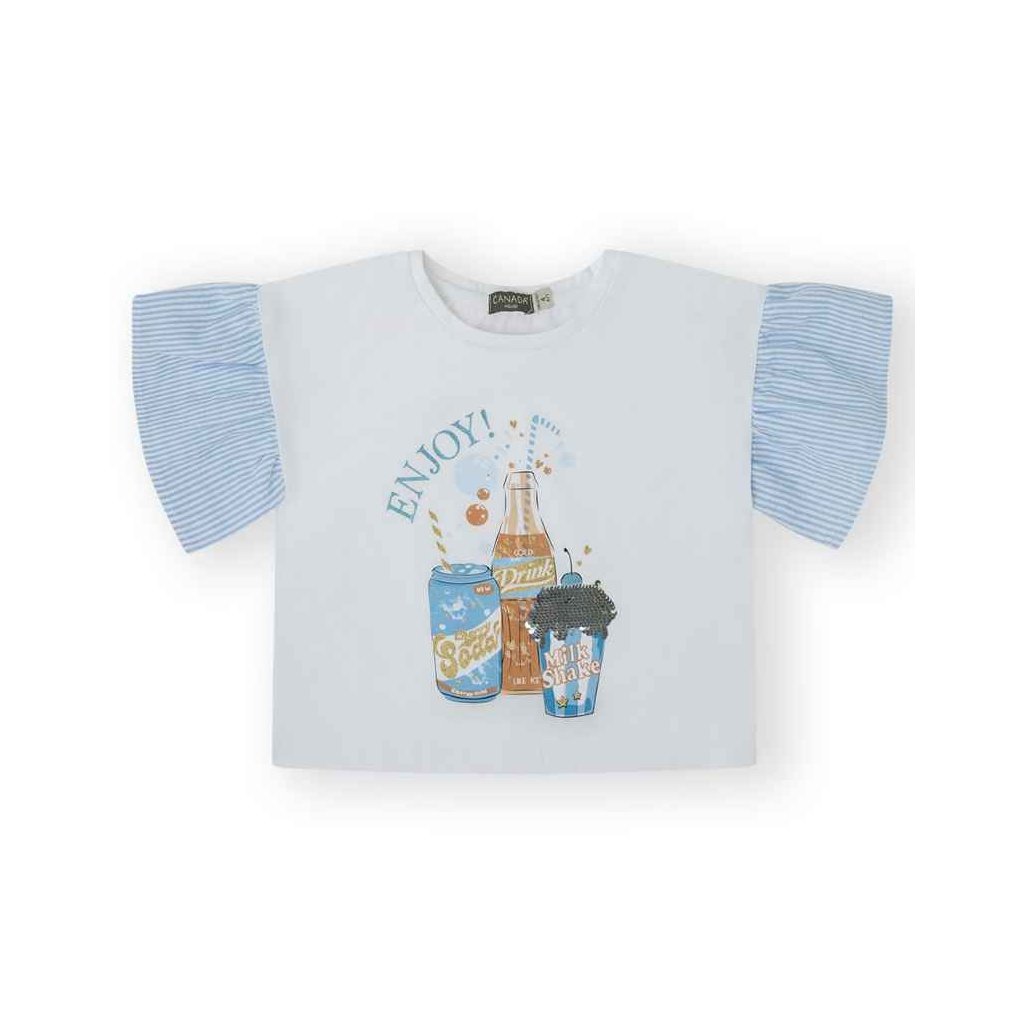 Trendy dívčí crop top s pohodlným střihem, který doplňují jemné pruhy na rukávech. Lehký a příjemný materiál poskytuje komfort, zatímco moderní design dodá outfitu svěží a stylový vzhled.