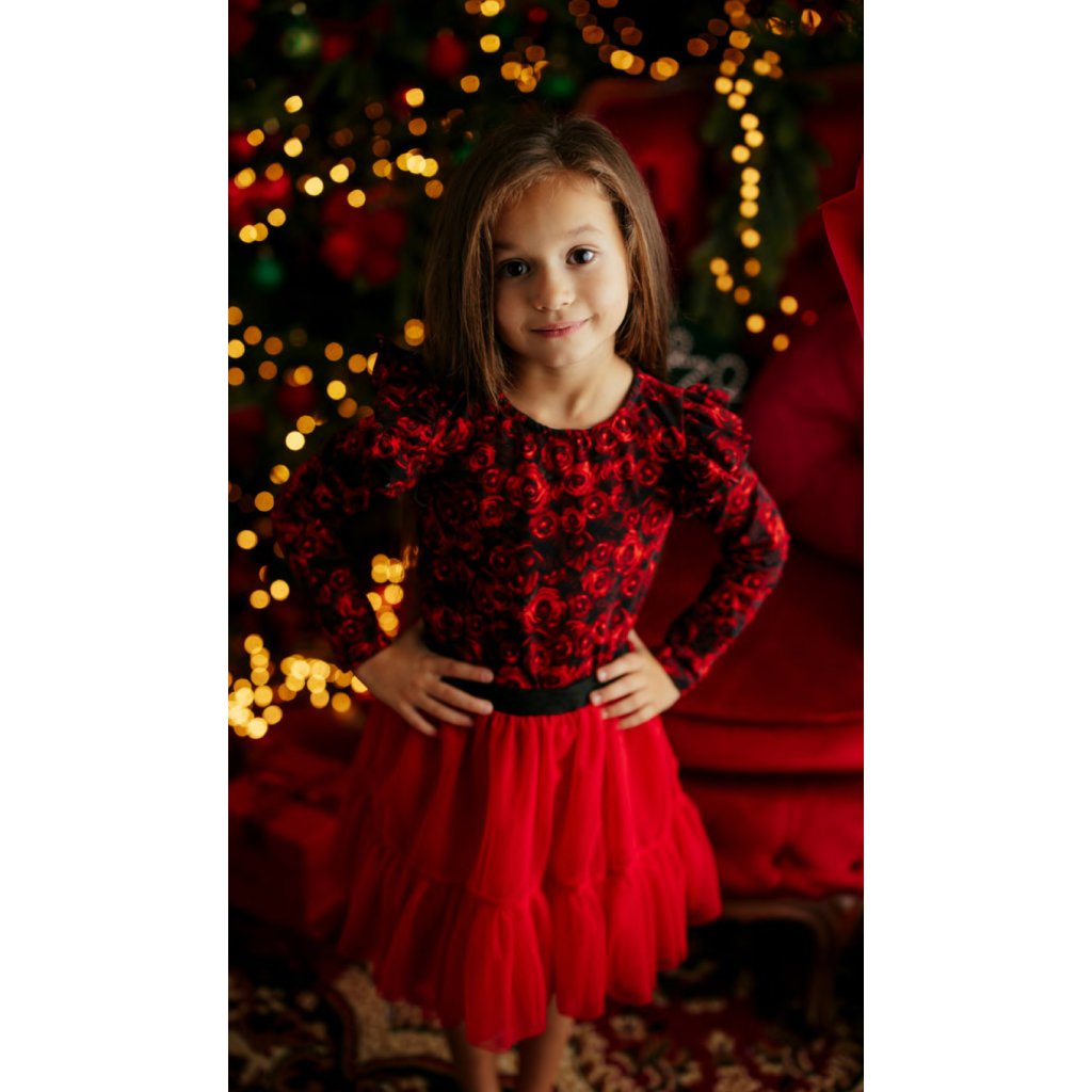 Dívčí tričko s volánky - Červenočerné