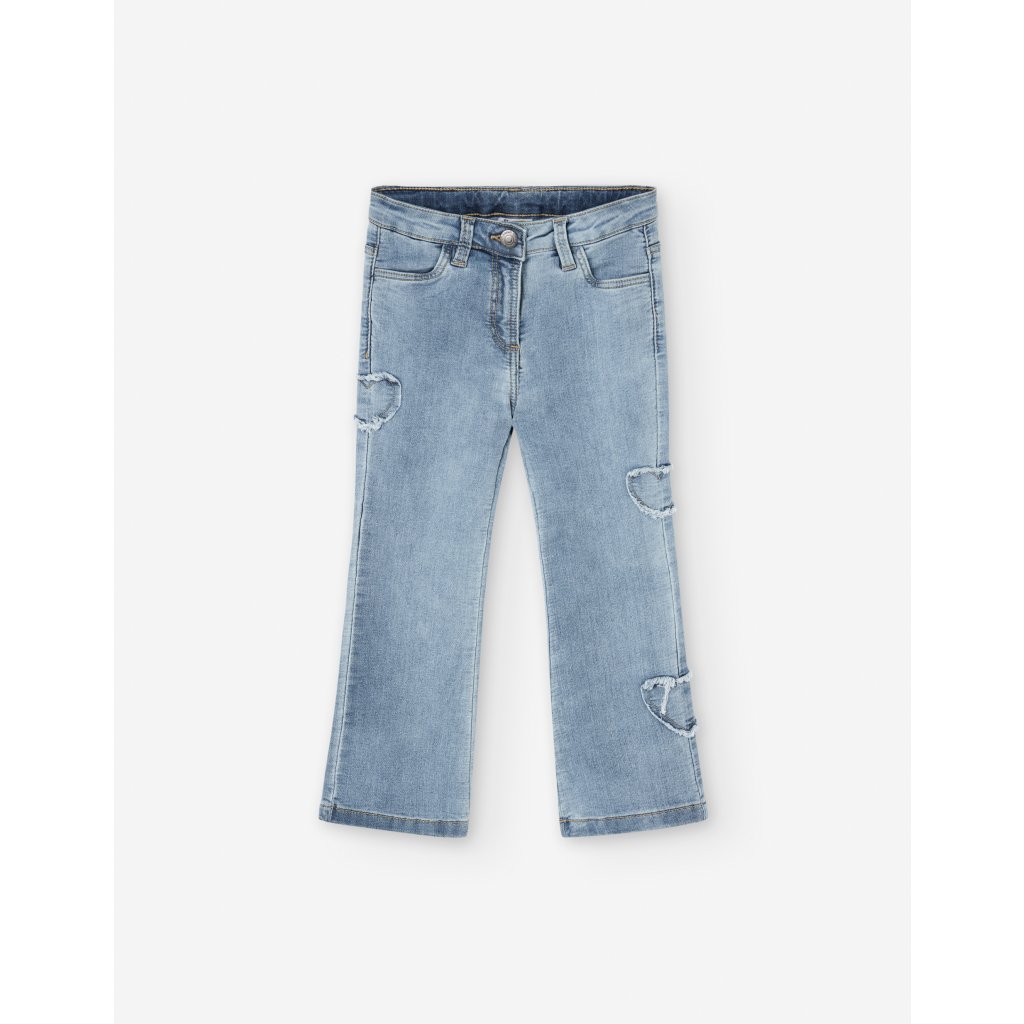 Roztomilé a stylové dívčí rifle značky Losan se zvonovým střihem, které upoutají jemným zdobením se srdíčky. Pohodlný střih a kvalitní riflový materiál zajišťují komfort při nošení, zatímco hravý detail dodává nohavicím dívčí šarm.