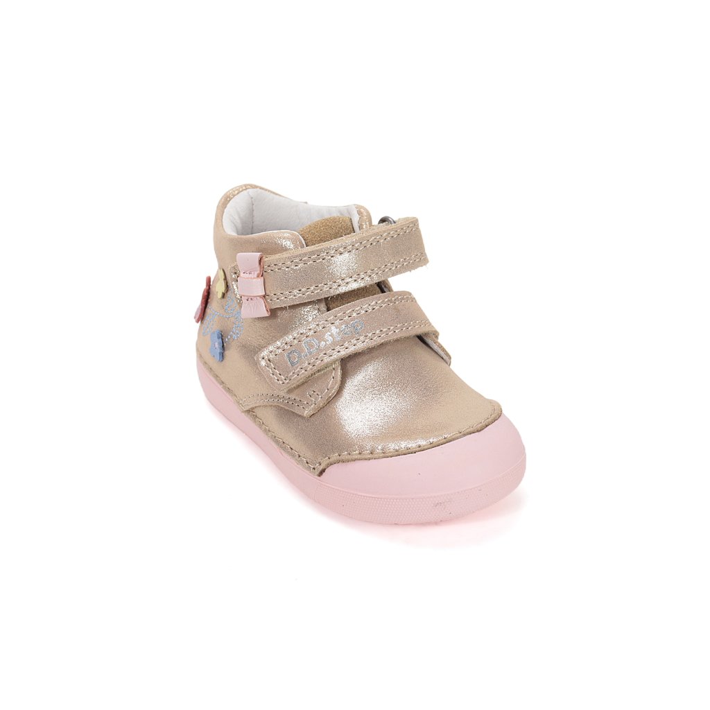 KLASICKÉ, ORTOPEDICKÉ: Topánky sú mierne vystužené, s tvarovanou ortopedickou vložkou. Každý produkt D.D.Step je vyrobený z pravej, kvalitnej hovädzej kože, aby sa zabezpečilo najlepšie prispôsobenie detskej nohe. Predná časť topánky je navrhnutá tak, aby chránila prsty, umožnila ich správny rast a zároveň zvýšila odolnosť obuvi. Formovaná výstuha poskytuje oporu a dlhotrvajúce spevnenie v oblasti päty. PVC výstuž je umiestnená medzi podšívkou a zvrškom, takže sa priamo nedotýka nohy, ale správne fixuje pätovú kosť.
