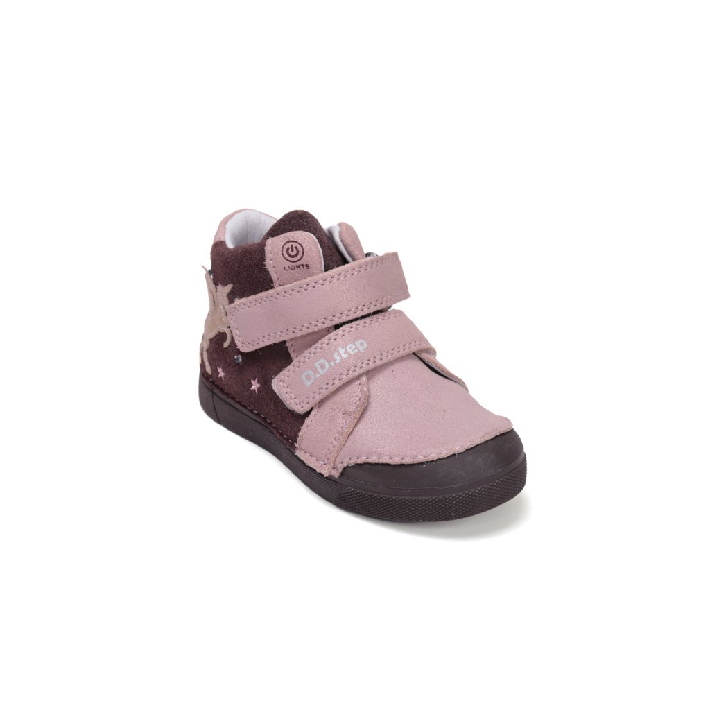 KLASICKÉ, ORTOPEDICKÉ: Topánky sú mierne vystužené, s tvarovanou ortopedickou vložkou. Každý produkt D.D.Step je vyrobený z pravej, kvalitnej hovädzej kože, aby sa zabezpečilo najlepšie prispôsobenie detskej nohe. Predná časť topánky je navrhnutá tak, aby chránila prsty, umožnila ich správny rast a zároveň zvýšila odolnosť obuvi. Formovaná výstuha poskytuje oporu a dlhotrvajúce spevnenie v oblasti päty. PVC výstuž je umiestnená medzi podšívkou a zvrškom, takže sa priamo nedotýka nohy, ale správne fixuje pätovú kosť.