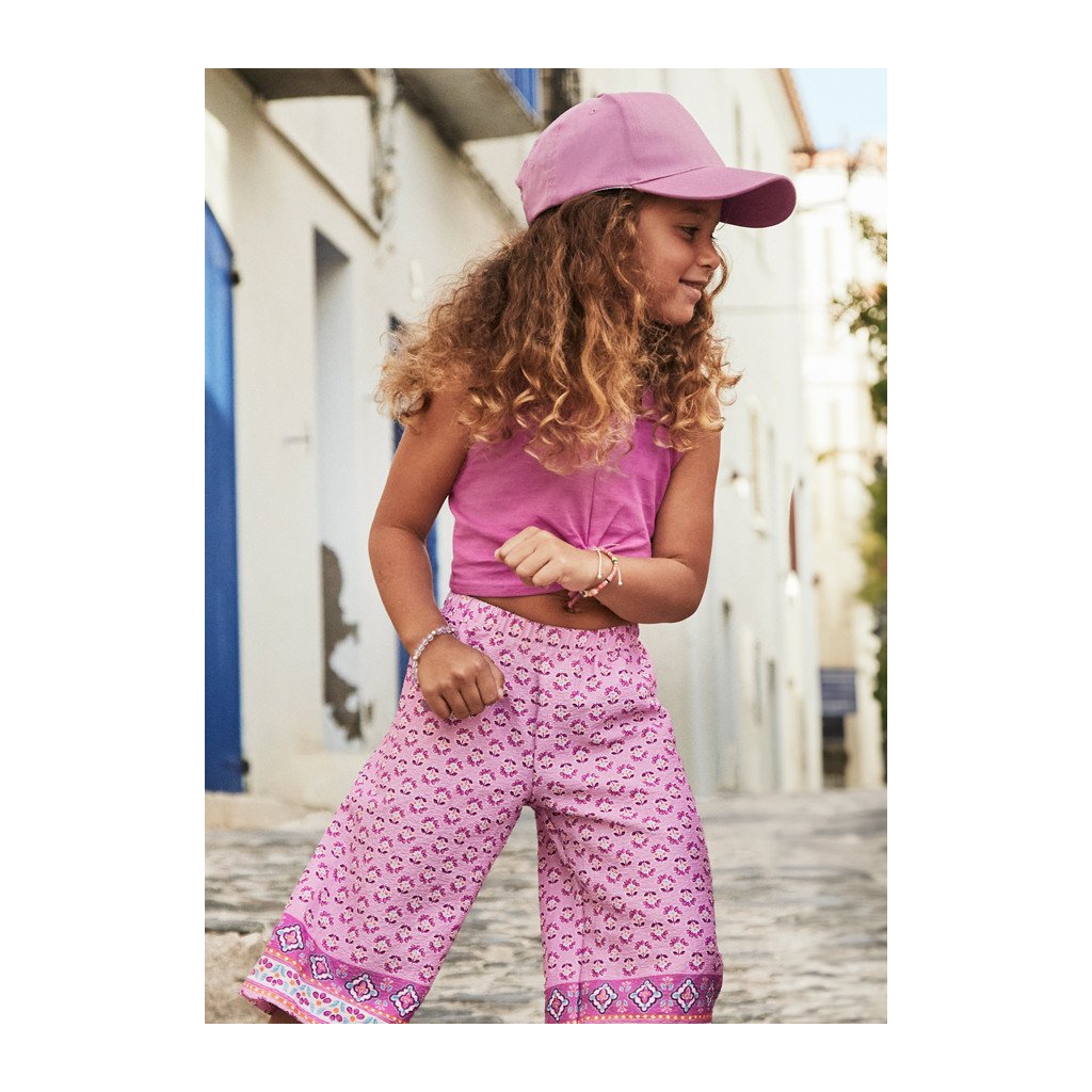 Stylová a lehká 2-dílná letní souprava MAYORAL, kterou tvoří letní top a 7/8 volné vzorované kalhoty. Top je vzdušný, příjemný na pokožku a ideální na horké letní dny. Volné 7/8 kalhoty jsou z měkkého a pohodlného materiálu, mají uvolněný střih, který poskytuje maximální komfort a svobodu pohybu.