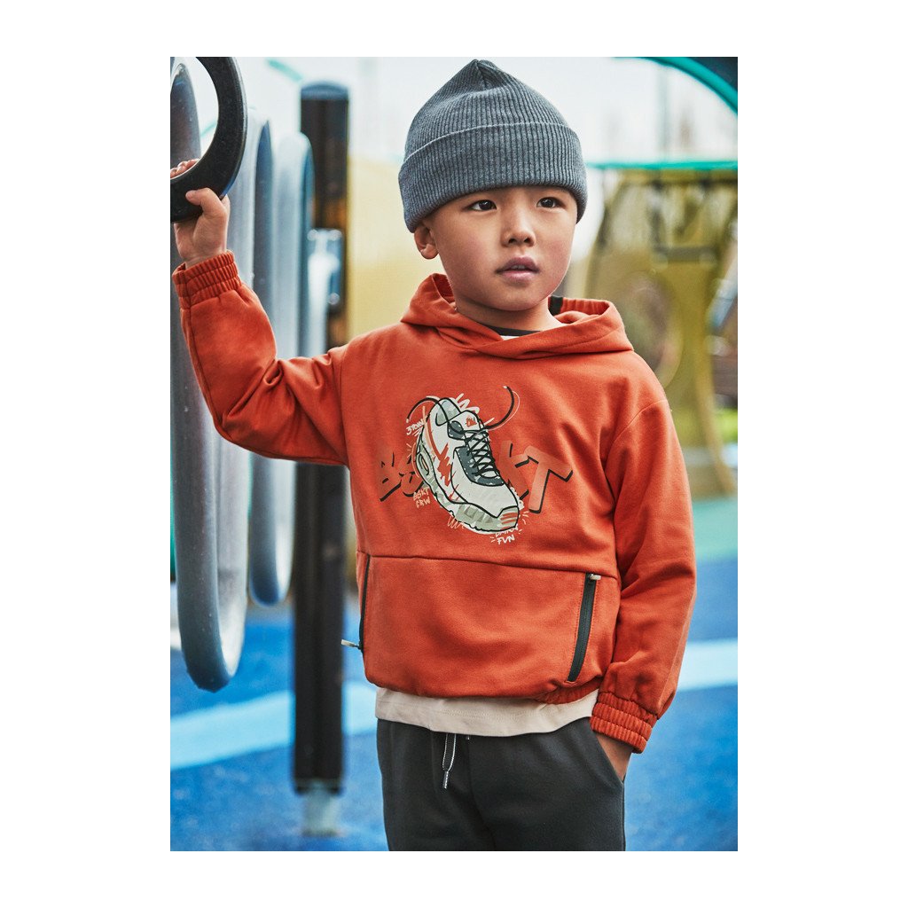 Tepláky jsou klasické, jednobarevné, s bočními kapsami i zadní kapsou, takže nabízejí dostatek prostoru na drobnosti. Mikina má kapuci, praktické kapsy na zip a je ozdobena stylovým potiskem, který dodává celému setu trendový vzhled typický pro Mayoral.