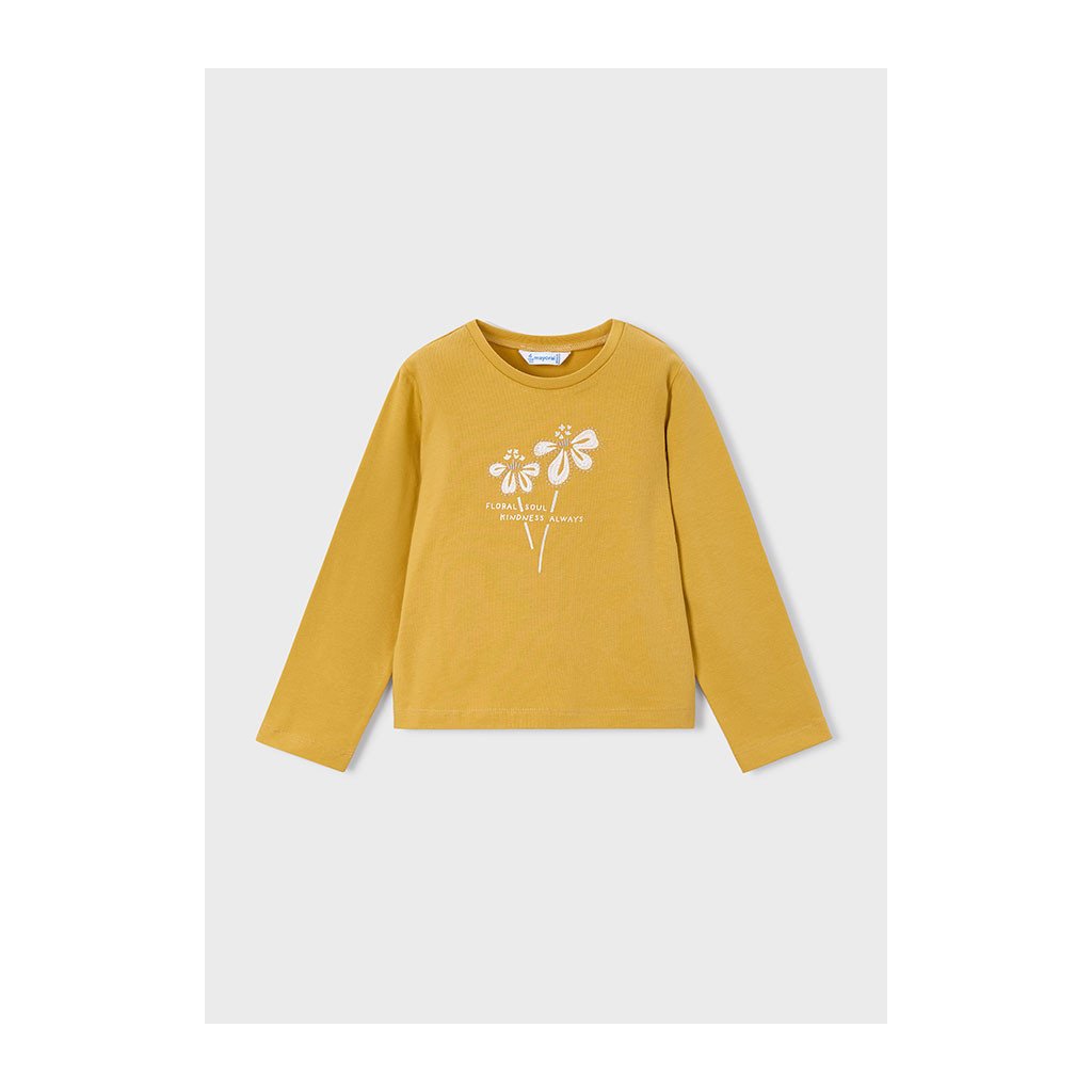MAYORAL basic dětské tričko s dlouhým rukávem – vyšité s květinou – Mustard