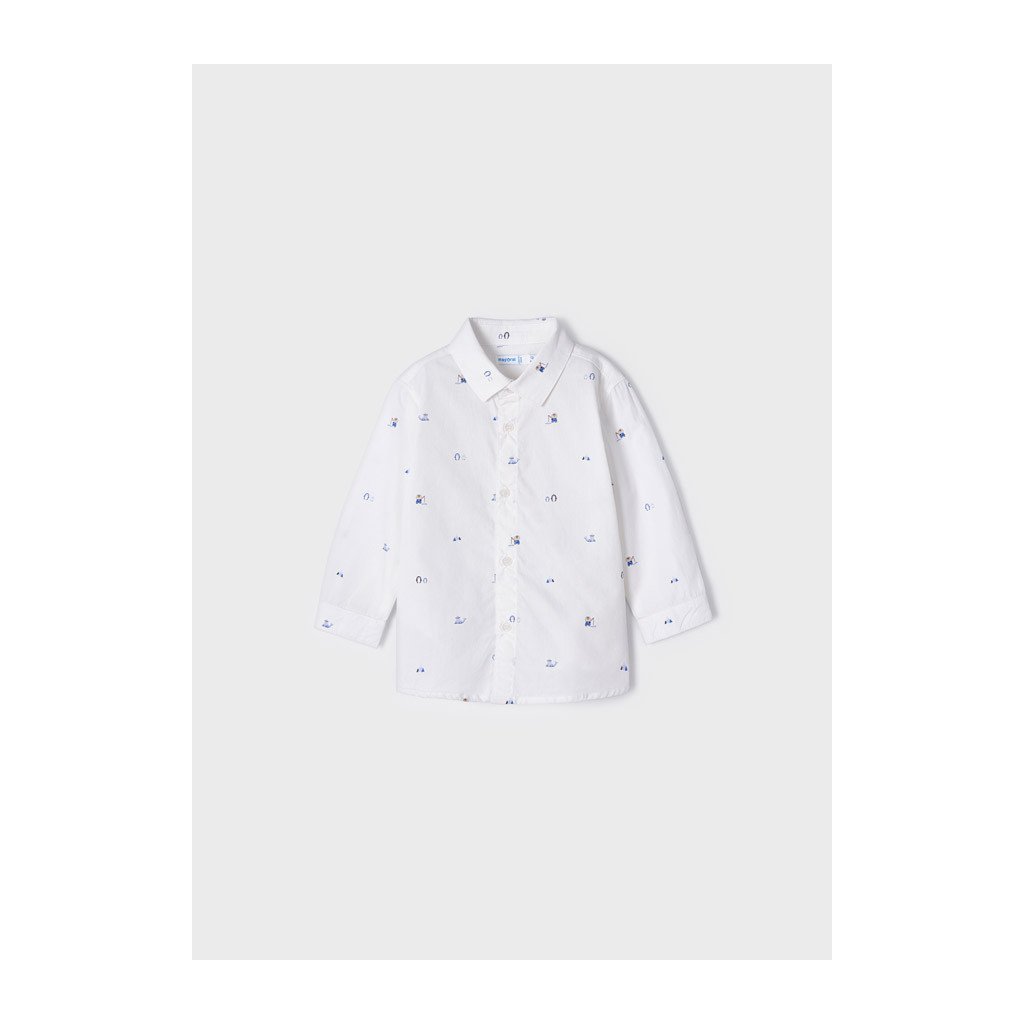 Chlapecká košile pro nejmenší značky Mayoral je vyrobena ze 100 % bavlny, která je příjemná na dotek a pohodlná pro děti. Košile má klasický střih, který umožňuje volný pohyb, a hravý jemný dětský potisk, který dodává outfitu veselý a stylový vzhled. Ideální na běžné nošení či rodinné oslavy.