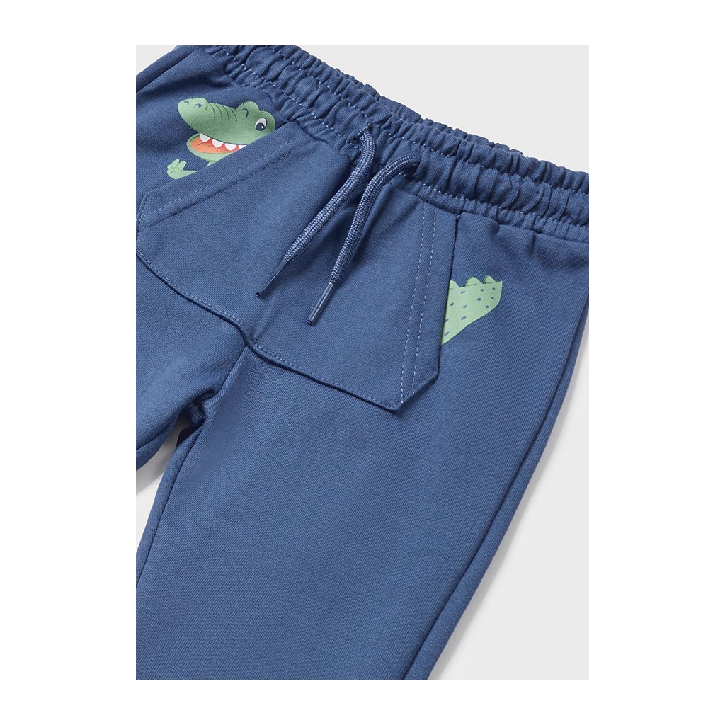 Tepláky majú praktické kangaroo vrecko vpredu do ktorého si dieťa môže schovať obe ruky, ozdobené veselým obrázkom krokodíla. Na zadnej strane sa nachádza zadné vrecko s malou aplikáciou, ktorá dotvára hravý dizajn. Mäkký a príjemný materiál je šetrný k citlivej detskej pokožke a poskytuje pohodlie počas celého dňa.