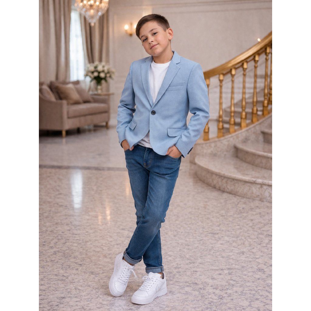 Toto elegantní chlapecké sako je vyrobeno z kvalitní bavlny a je ideálním kouskem pro stylový a upravený vzhled. Jednořadové zapínání dodává saku moderní a čistý design, zatímco kapsy s klopou zdůrazňují jeho klasický elegantní charakter. Sako je měkké, lehké a velmi příjemné na nošení, takže se hodí jak pro formální příležitosti, tak pro neformální outfity s nádechem elegance.