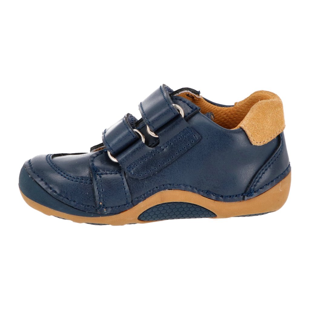Zapínání na suchý zip zajišťuje snadné obouvání a zouvání a dobré přizpůsobení noze. Tmavomodré provedení je praktické a vhodné na každodenní nošení.