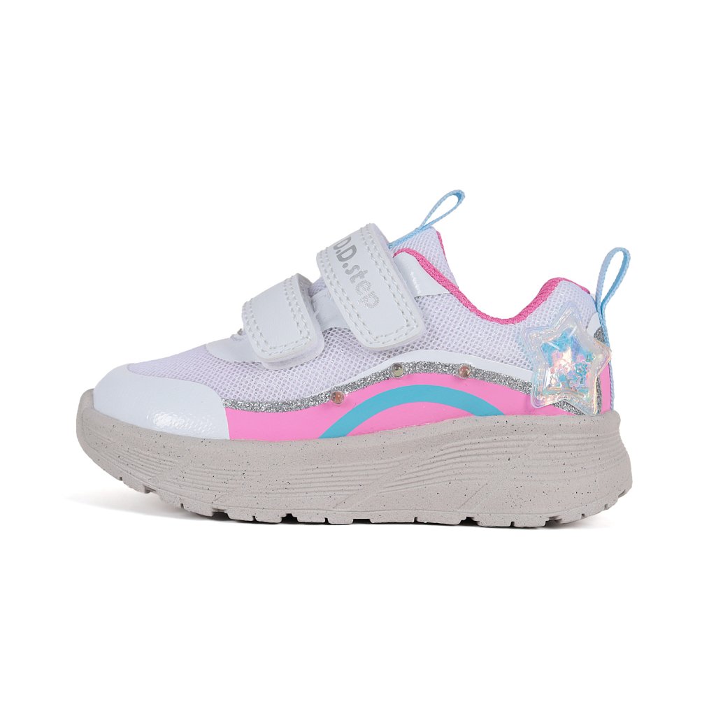 Tato ultra lehká teniska značky D.D.STEP spojují pohodlí, kvalitu a hravý design — ideální pro aktivní děti, které milují pohyb a zároveň nechtějí být přehlédnuty. Vrchní část je vyrobena z kvalitní přírodní kůže, což zajišťuje prodyšnost a komfort při nošení. Podšívka a stélka jsou také kožené, stélka je vyjímatelná a tvarovaná tak, aby podporovala správnou klenbu nohy.