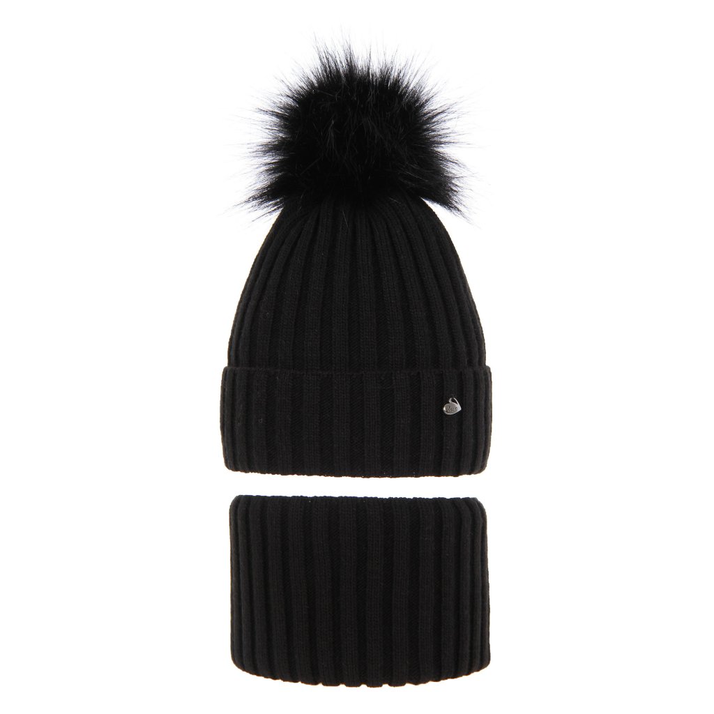 Zimní čepice s huňatým brmbolcem a nákrčníkem