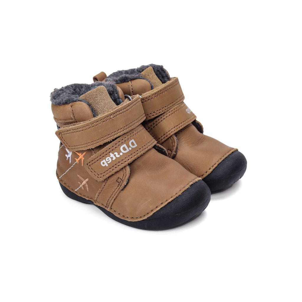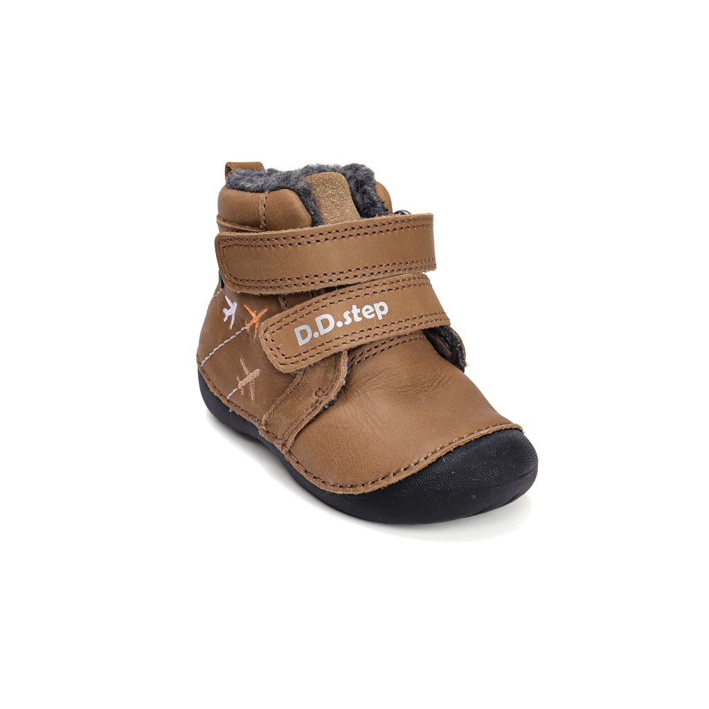 KLASICKÉ, ORTOPEDICKÉ: Topánky sú mierne vystužené, s tvarovanou ortopedickou vložkou. Každý produkt D.D.Step je vyrobený z pravej, kvalitnej hovädzej kože, aby sa zabezpečilo najlepšie prispôsobenie detskej nohe. Predná časť topánky je navrhnutá tak, aby chránila prsty, umožnila ich správny rast a zároveň zvýšila odolnosť obuvi. Formovaná výstuha poskytuje oporu a dlhotrvajúce spevnenie v oblasti päty. PVC výstuž je umiestnená medzi podšívkou a zvrškom, takže sa priamo nedotýka nohy, ale správne fixuje pätovú kosť.